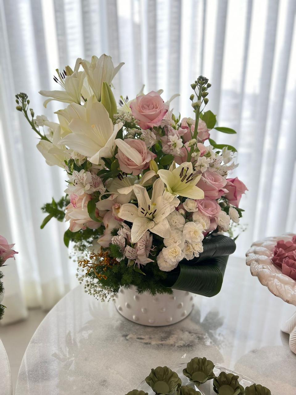 Envolva este momento sagrado com a delicadeza das flores. Nossos arranjos florais são criados com o máximo cuidado para refletir a pureza e a espiritualidade do batizado. Cada detalhe é pensado para trazer um toque de graça, leveza e serenidade, tornando a celebração ainda mais especial e inesquecível.
